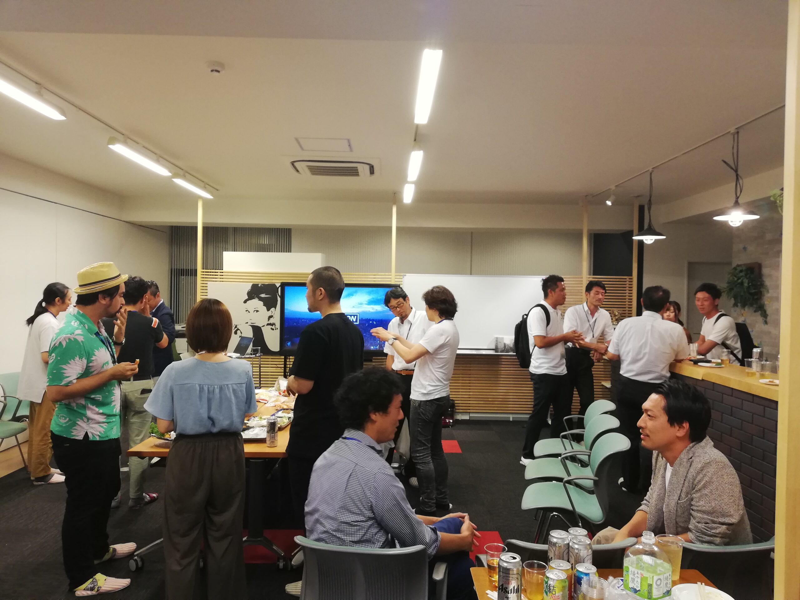 第一回目となる今回は、どんな技術や方針を持って活動しているのか、自己紹介を兼ねたビジネスモデルについての簡単なプレゼンと懇親会を行いました。