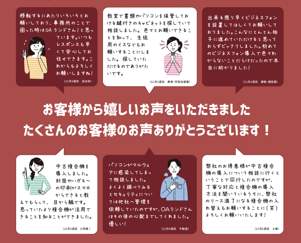 ホーム » お知らせ » お客様の声をたくさんいただきました_Vol.9