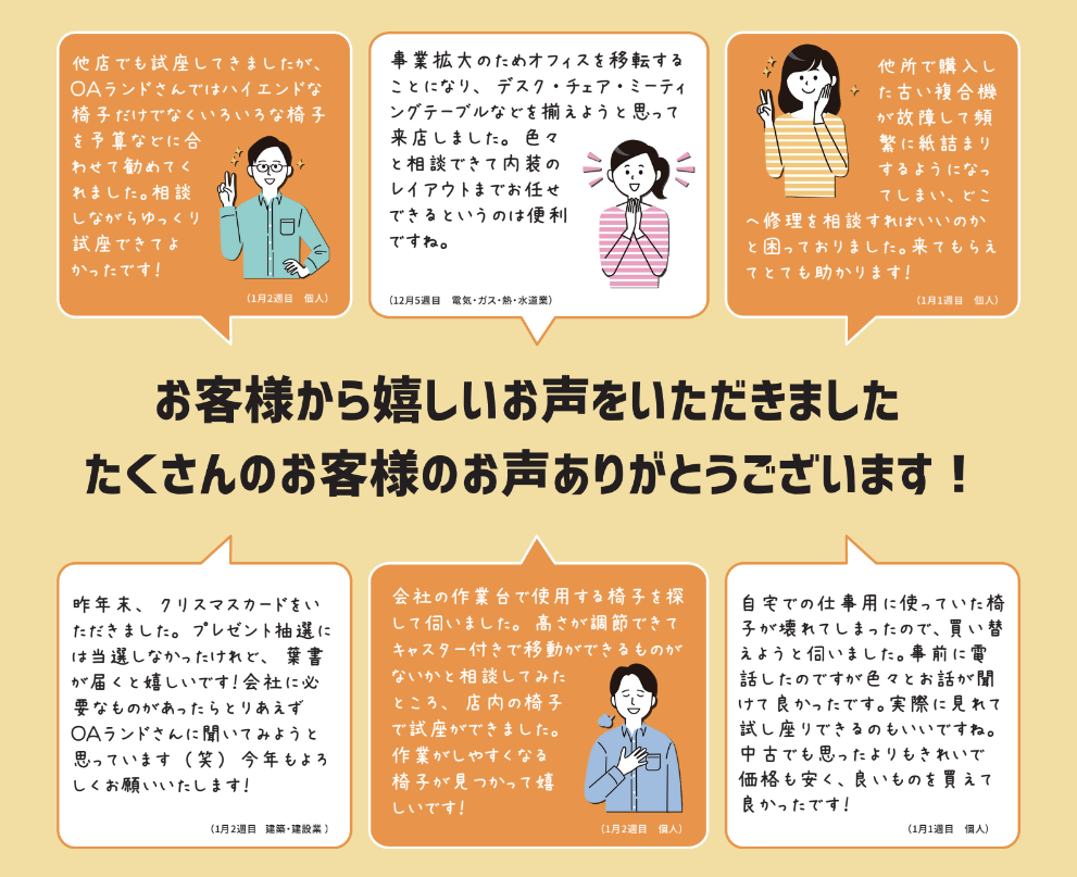 1月もたくさんのお客さまのお声をいただき嬉しい限りです。