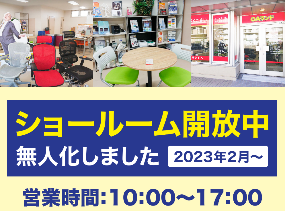 2023年2月よりOAランド博多ショールームは新たな取り組みとして、ショールーム無人化での営業となりますことをお知らせいたします。