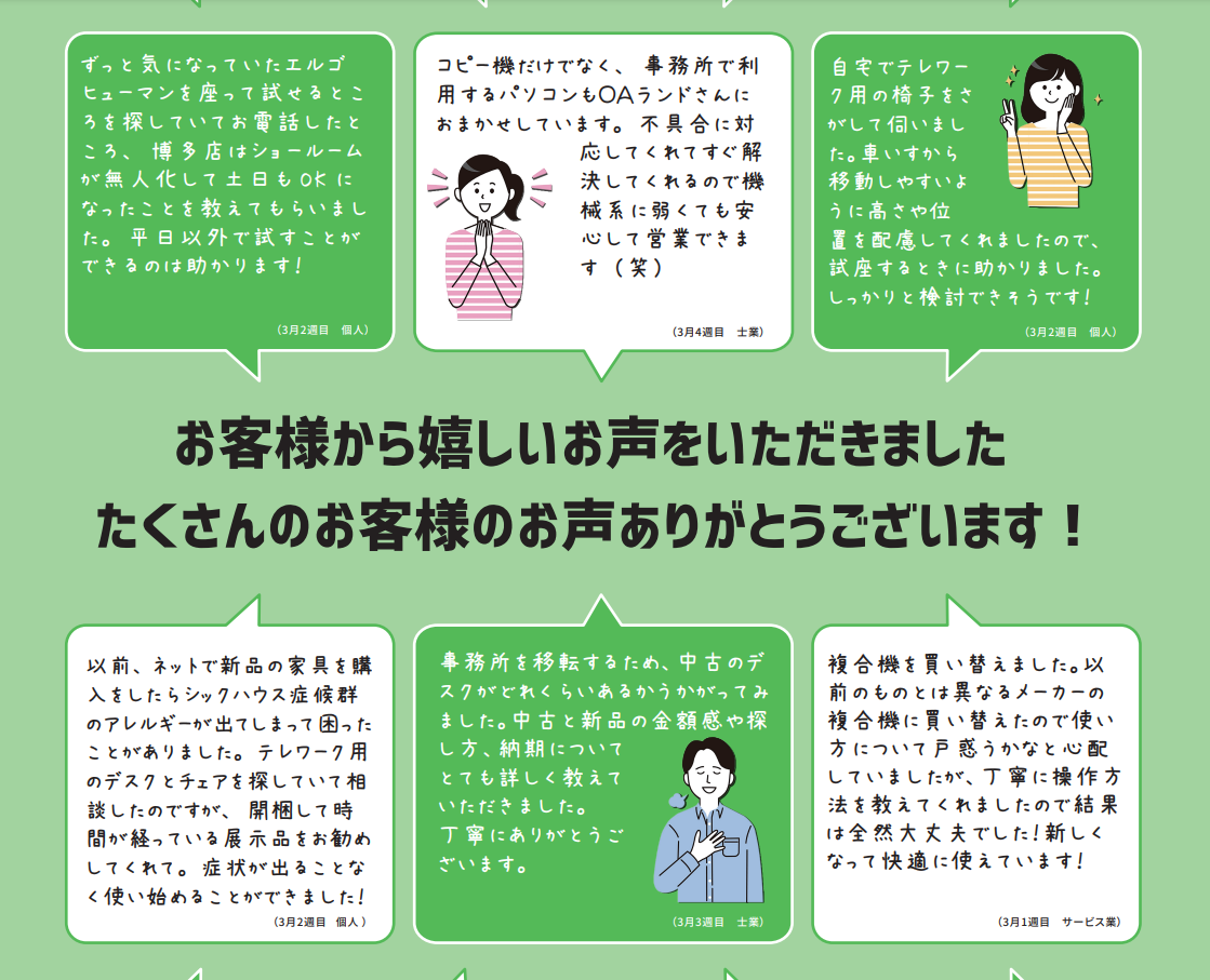 ホーム » お知らせ » お客様の声をたくさんいただきました_Vol.13
