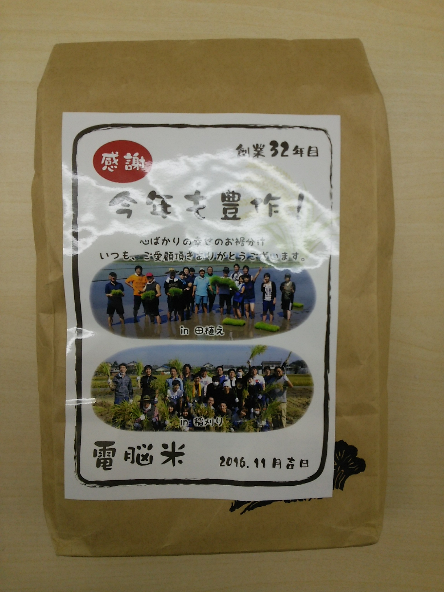 「電脳米2016」完成しました!今回も無事に精米まで終わり立派な電脳米が完成しました。オリジナルラベルを貼りお客様へお届けいたします。昨年同様、埼玉県鴻巣市生まれの「彩のかがやき」で作られたオリジナルお米です。社員一同、力を合わせて作った電脳米をぜひご賞味ください。
